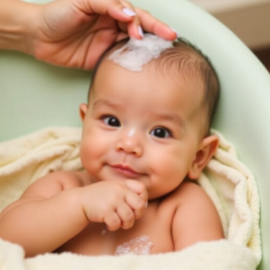 - الترطيب: ضع مرطبًا خفيفًا وآمناً للطفل إذا شعرت بفروة رأس جافة.